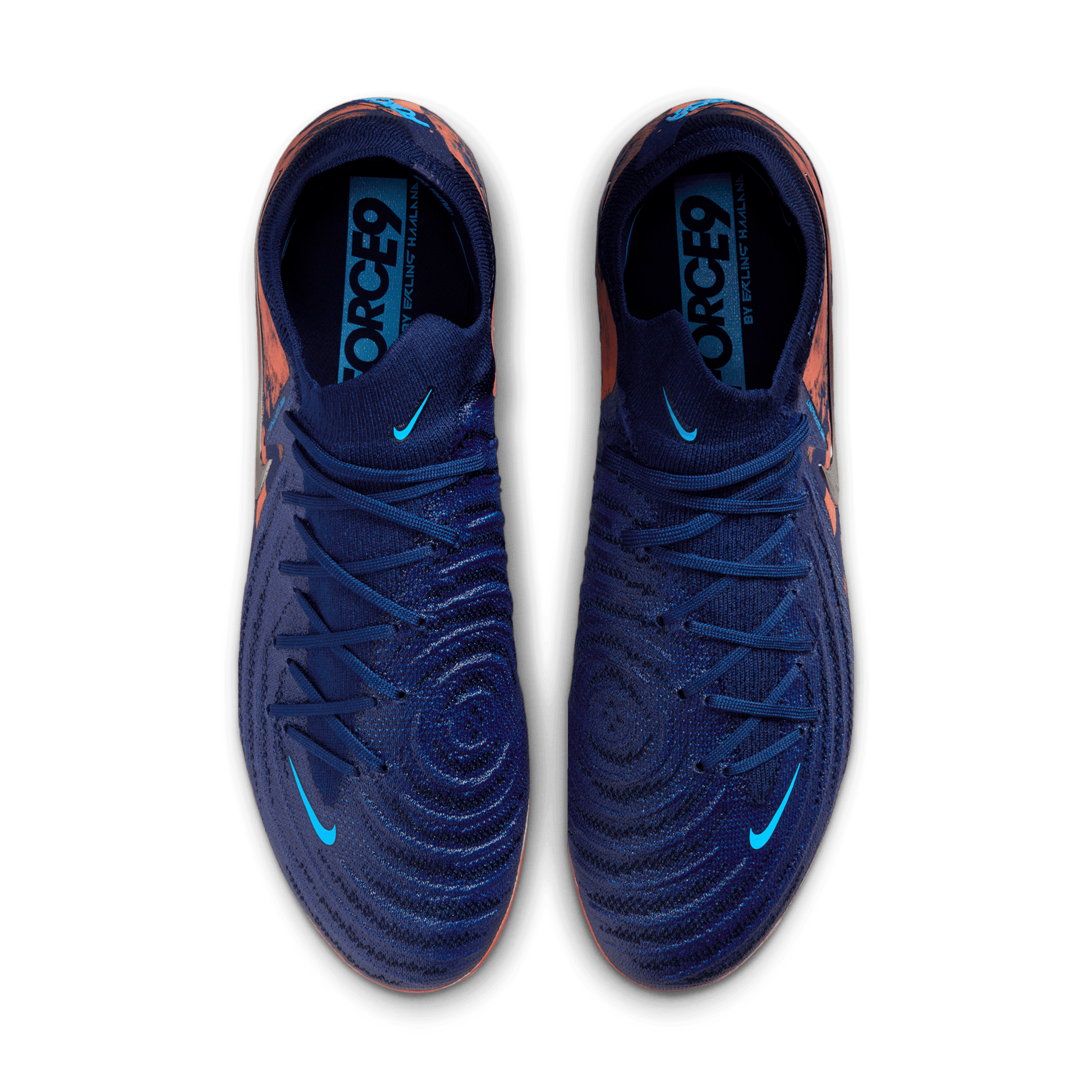 The dark blues represent the wintertime skies of Erling’s native Norway, while the vibrant orange embodies the brightness that the nature brings. The upper’s shiny finish symbolizes the stars in the sky and the infinite number of goals Erling has scored throughout his illustrious career.