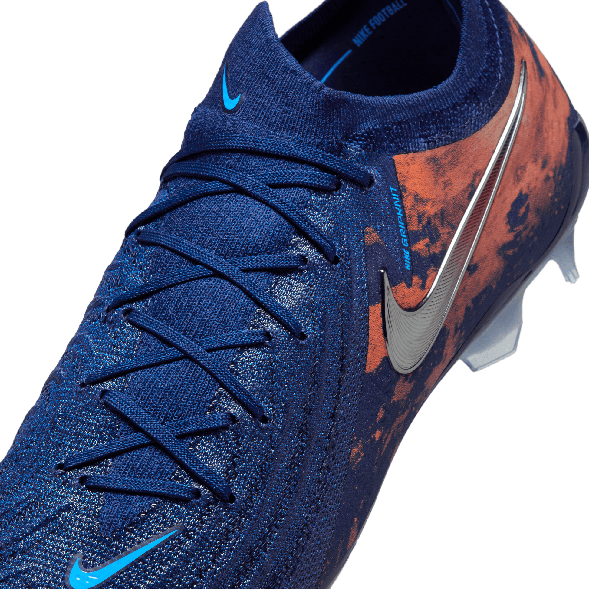 Nike Gripknit is a sticky material that provides exceptional touch to the ball. It covers the striking area of the cleat, stretching from the big-toe side all the way across the laces to the pinky toe, allowing clean boot-to-ball kicks. It molds to the shape of your foot and gives you great grip in wet or dry conditions. Micro-molding texture works with Gripknit to help form to your foot for even better cleat-to-ball strikes.