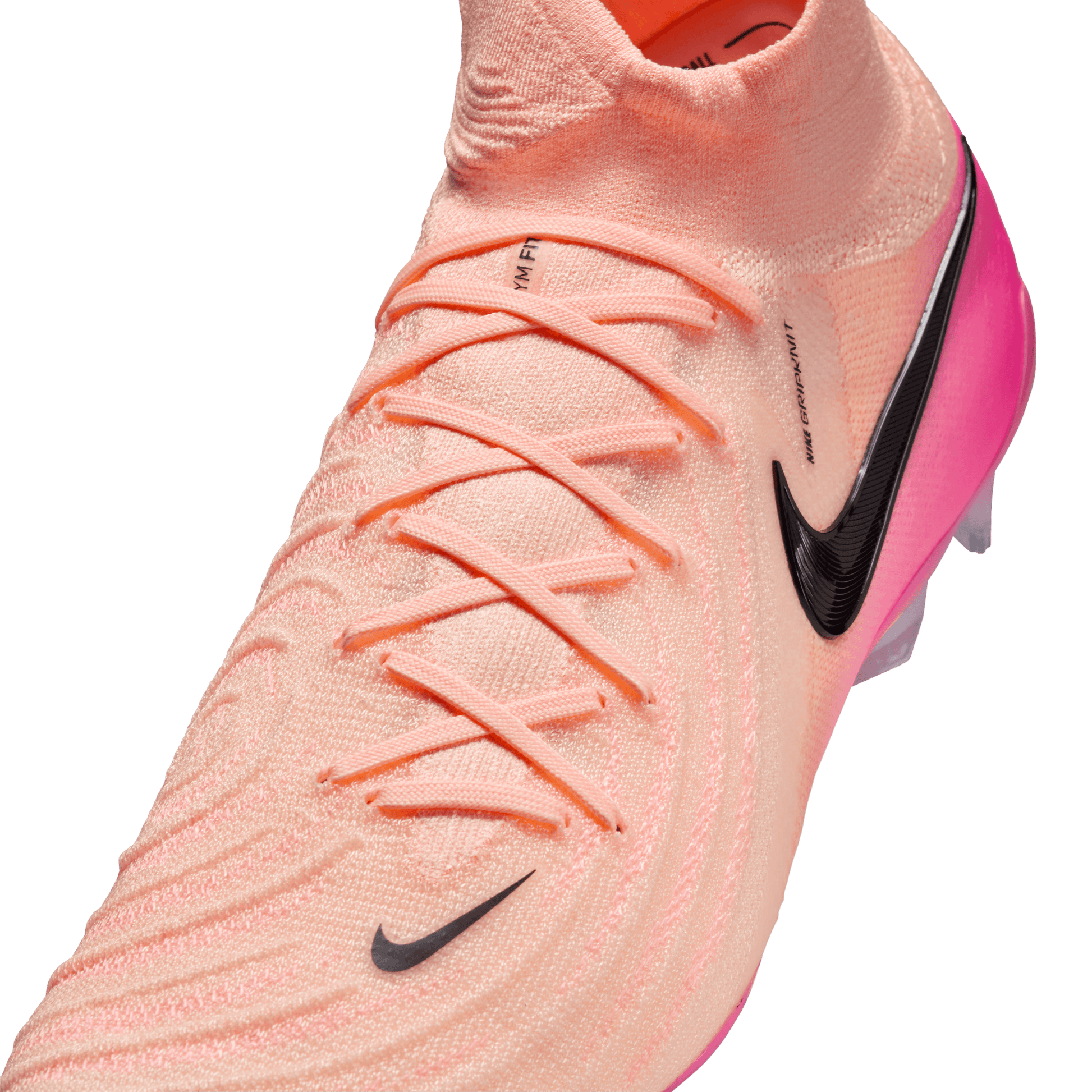 Nike Gripknit is a sticky material that provides exceptional touch to the ball. It covers the striking area of the cleat, stretching from the big-toe side all the way across the laces to the pinky toe, allowing clean boot-to-ball kicks. It molds to the shape of your foot and gives you great grip in wet or dry conditions. Micro-molding texture works with Gripknit to help form to your foot for even better cleat-to-ball strikes.