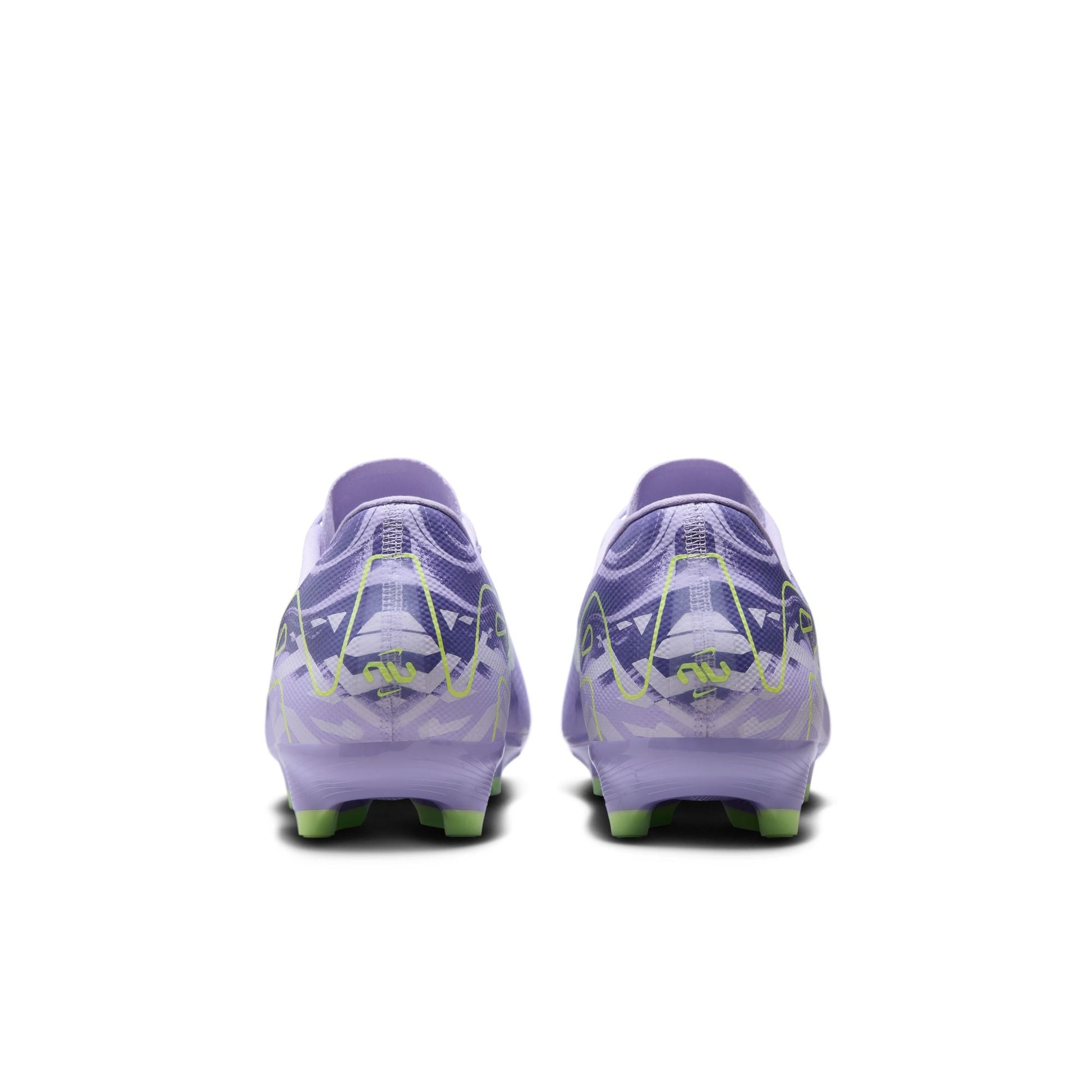 The wave-like traction pattern is a series of cascading studs, so it engages more surface area of the Air Zoom unit while also providing the appropriate amount of grip. The biggest stud is the same height as our traditional middle studs, so traction is not compromised. We paired the wave-like traction with evolved chevron and blade studs to help you stop when making quick cuts.